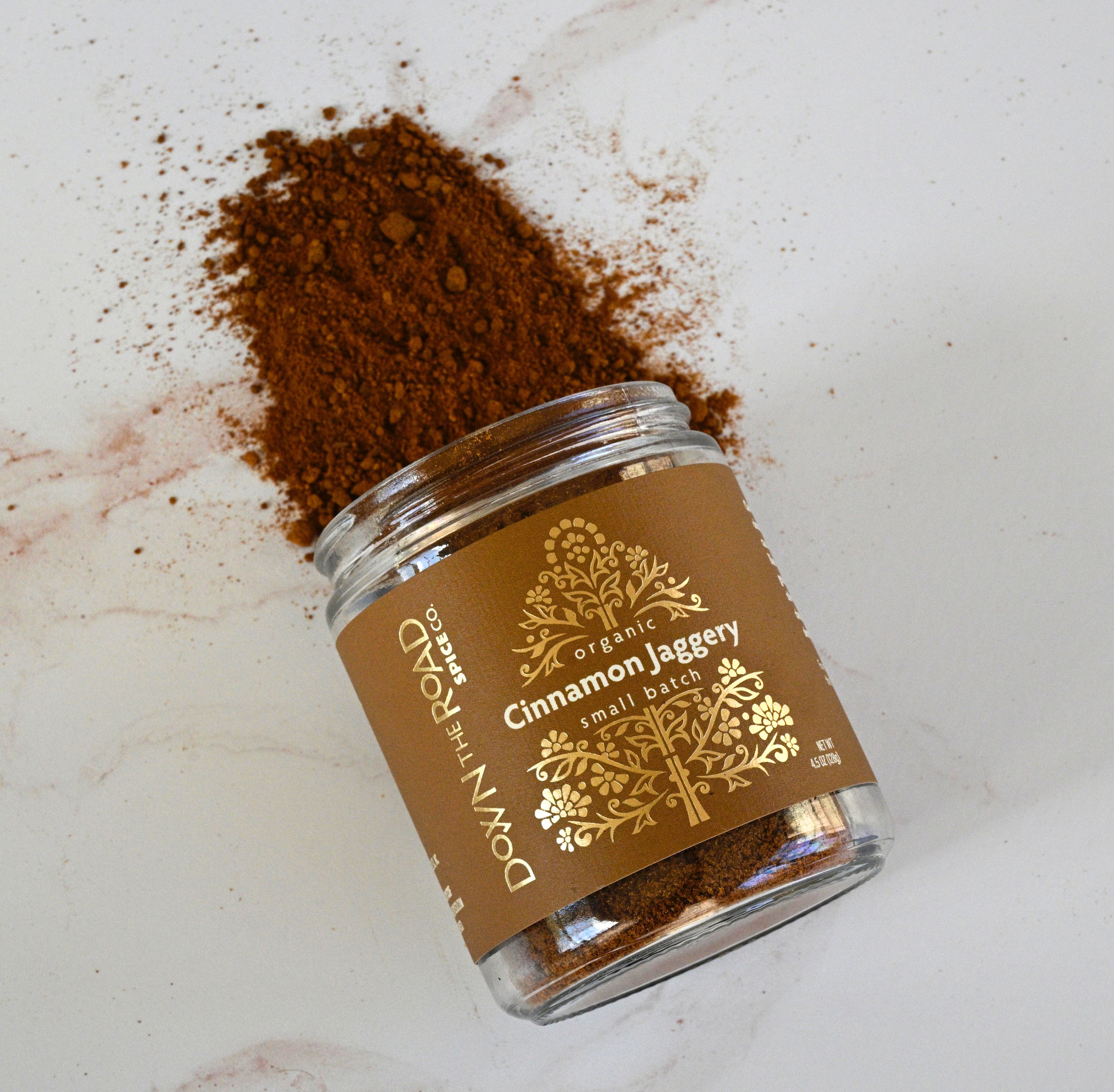 Our Cinnamon Jaggery is an original, one-of-a-kind blend that will be your new kitchen companion. An elevated take on cinnamon sugar, the warm spice of cassia cinnamon plays perfectly with the molasses-like sweetness of jaggery. It is about half as sweet as pure cane sugar, making it a lighter way to bring sweetness and depth of flavor to your recipes.